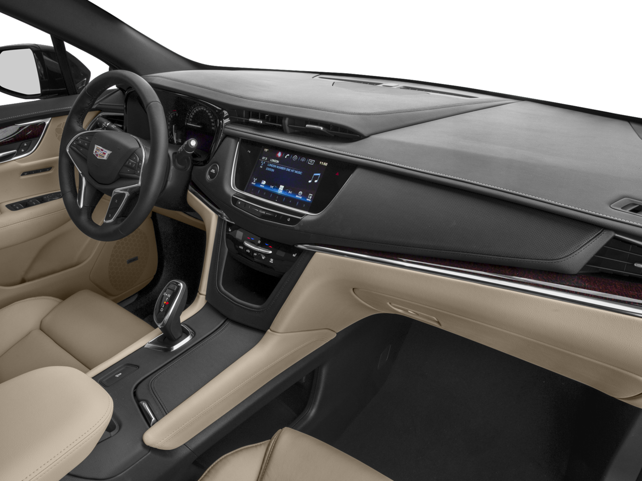 - Cadillac user experience, AM/FM stereo with 8" diagonal color information display, four USB ports, two auxiliary power outlets, auxiliary input jack, Natural Voice Recognition and Phone Integration for Apple CarPlay and Android Auto capability for compatible phone (Upgradeable to (IO6) Cadillac user experience with Embedded Navigation.)